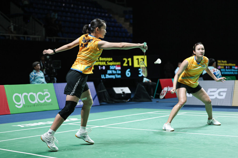 คู่ที่สองประเภทหญิงคู่มือ 1 “มูนา” เบญญาภา เอี่ยมสอาด จับคู่กับ “เฟม” ศุภิสรา เพียวสามพราน ลงดวลกับ จิน ยูเจีย และ เจิ้ง หยานลี ตัวแทนจากสิงคโปร์ ซึ่งคู่นี้กลายเป็นโชว์เคสของความเหนือชั้นอย่างแท้จริง