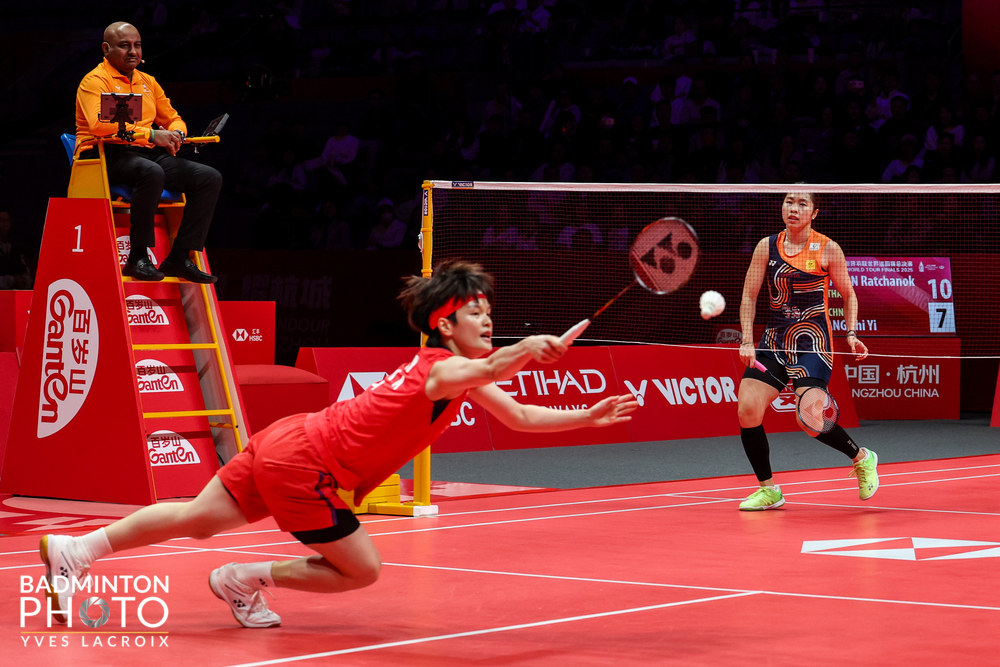 เมย์ รัชนก แม้จะเริ่มแสดงอาการล้าให้เห็นบ้าง แต่ยังพยายามฮึดสู้ทุกแต้ม ไม่ยอมปล่อยเกมง่ายๆ ไล่เก็บแต้มจากจังหวะเคาน์เตอร์และลูกหยอดที่เป็นเอกลักษณ์ แต่เมื่อเจอเกมรุกดุดันผสมแรงเชียร์จากเจ้าถิ่นในหางโจว ความกดดันยิ่งถาโถม สุดท้ายเมย์ต้านความแกร่งของมือ 2 โลกไม่อยู่ แพ้ไปในเกมตัดสิน 11-21