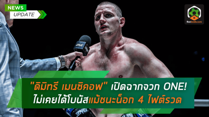 วงการศิลปะการต่อสู้ต้องสั่นสะเทือนอีกครั้ง! เมื่อ ดิมิทรี เมนซิคอฟ นักชกสายบู๊ชาวรัสเซีย ออกโรงวิพากษ์วิจารณ์ ONE Championship อย่างเผ็ดร้อน หลังประกาศแยกทางกับองค์กรอย่างเป็นทางการ โดยเขายืนยันว่าตลอดเส้นทางในศึก ONE ลุมพินี แม้จะโชว์ฟอร์มสุดโหดน็อกคู่แข่งไปถึง 4 ไฟต์จาก 5 ไฟต์ ที่ขึ้นสังเวียน แต่กลับ ไม่เคยได้รับโบนัสแม้แต่ครั้งเดียว