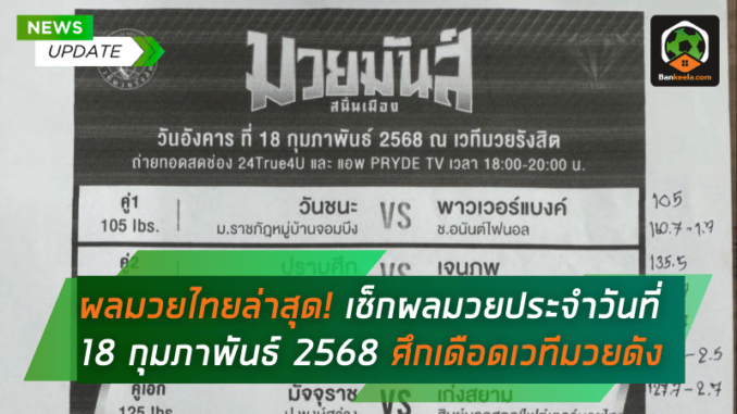 ผลมวยไทยล่าสุด! เช็กผลมวยประจำวันที่ 18 กุมภาพันธ์ 2568 ศึกเดือดเวทีมวยดังทั่วประเทศ