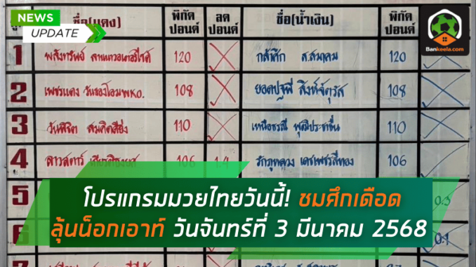 โปรแกรมมวยไทย วันจันทร์ที่ 3 มีนาคม 2568