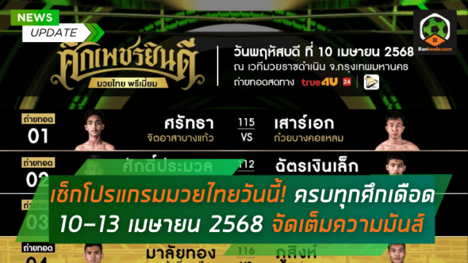 โปรแกรมมวยไทย วันพฤหัสบดีที่ 10 เมษายน 2568