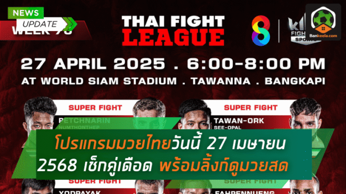 โปรแกรมมวยไทย วันอาทิตย์ที่ 27 เมษายน 2568