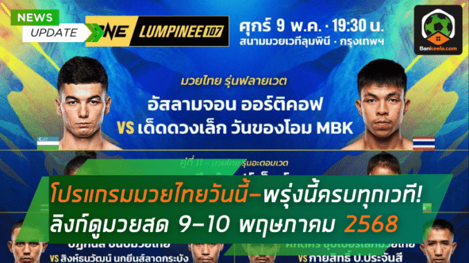 โปรแกรมมวยไทยวันนี้–พรุ่งนี้ครบทุกเวที! ลิงก์ดูมวยสด 9-10 พฤษภาคม 2568 จัดหนักศึก ONE, RWS, จ้าวมวยไทย และอีกเพียบ