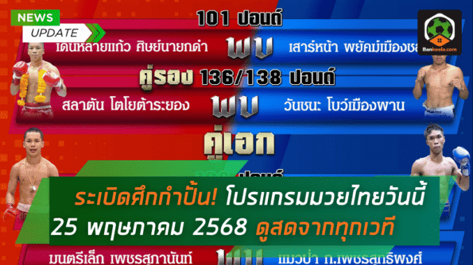 📌 โปรแกรมมวยไทย วันอาทิตย์ที่ 25 พฤษภาคม 2568