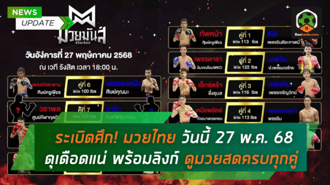 ระเบิดศึก! โปรแกรมมวยไทยวันนี้ 27 พ.ค. 68 ดุเดือดแน่ พร้อมลิงก์ดูมวยสดครบทุกคู่