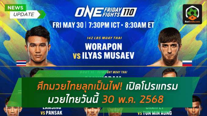 นี่คือ โปรแกรมคู่มวย ONE ลุมพินี ประจำวันศุกร์ที่ 30 พฤษภาคม 2568: