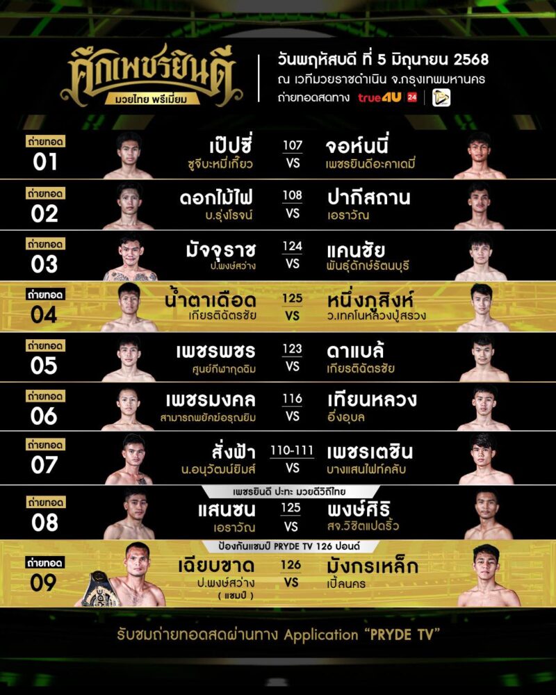 โปรแกรมมวยไทย วันพฤหัสบดีที่ 5 มิถุนายน 2568