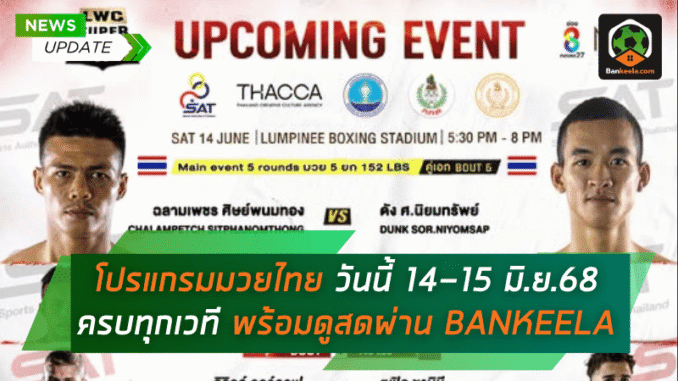 โปรแกรมมวยไทยสุดสัปดาห์นี้! เสาร์-อาทิตย์ 14-15 มิถุนายน 2568 ลุ้นครบทุกเวที ดูสดได้ที่ BANKEELA