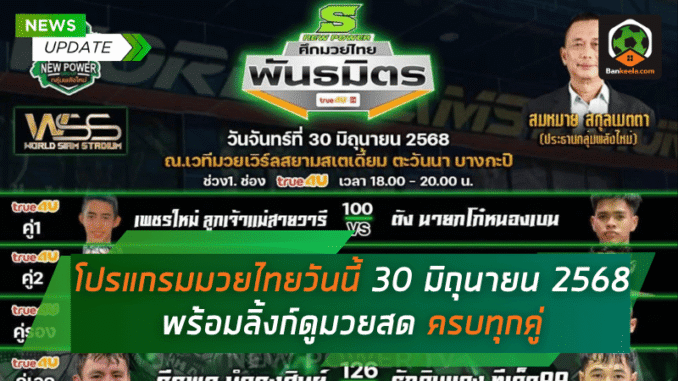 ระเบิดความมันส์! โปรแกรมมวยไทยวันนี้ 30 มิถุนายน 2568 พร้อมลิ้งก์ดูมวยสดครบทุกคู่