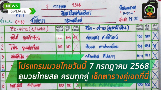 โปรแกรมมวยไทยวันนี้ 7 กรกฎาคม 2568 ดูมวยไทยสด ครบทุกคู่ เช็กตาราง-คู่เอกที่นี่