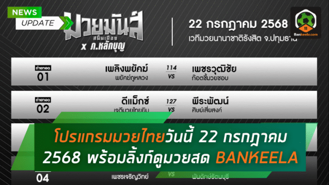 โปรแกรมมวยไทยวันนี้ 22 กรกฎาคม 2568 ดุเดือดทุกคู่ พร้อมลิ้งก์ดูมวยสด BANKEELA