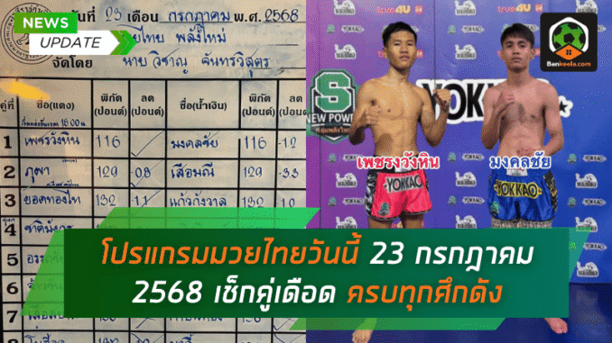 โปรแกรมมวยไทย วันพุธที่ 23 กรกฎาคม 2568