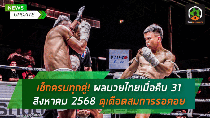 คอมวยไทยห้ามพลาด บ้านกีฬา พาเก็บตกทุกผลการแข่งขันจากเวทีมวยทั่วประเทศในคืนวันอาทิตย์ที่ 31 สิงหาคม 2568 ศึกใหญ่ ศึกดัง มีทั้ง ศึกมวยดีวิถีไทย, มวยไทย 7 สี, ศึกท่อน้ำไทย ทีเคโอเกียรติเพชร และ ไทยไฟท์ ที่ต่างระเบิดความมันส์ให้แฟน ๆ ได้ลุ้นทุกวินาที พร้อมอัปเดต ผลมวยไทย อย่างครบถ้วนและดุดันที่สุด