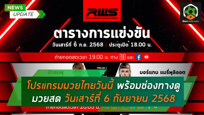 โปรแกรมมวยไทยวันนี้ พร้อมช่องทางดูมวยสด วันเสาร์ที่ 6 กันยายน 2568