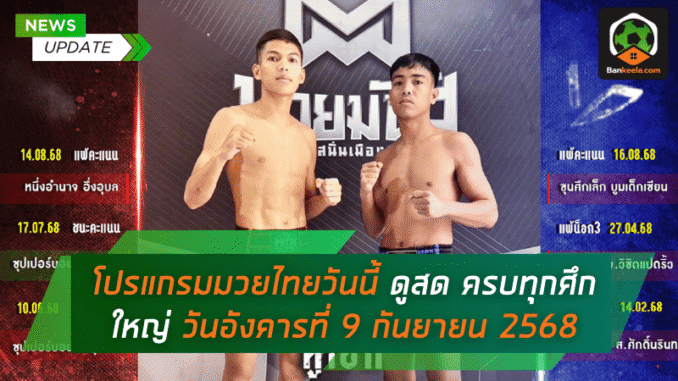 สำหรับแฟนกำปั้นไทยที่รอชมศึกดุเดือด บ้านกีฬา ขอพามาเช็ก โปรแกรมมวยไทย วันนี้แบบจัดเต็ม ครบทุกเวทีสำคัญ ไม่ว่าจะเป็น ศึกมวยไทย 7 สี, ศึก ONE ลุมพินี, ศึกจ้าวมวยไทย ช่อง 3, ศึก RWS ราชดำเนิน เวิลด์ซีรีส์, ไทยไฟท์ และศึกเพชรยินดี พร้อมอัปเดตช่องทาง ดูมวยไทย แบบสดๆ ได้ทั้งทางทีวีและออนไลน์ ใครที่อยากรู้ผลแบบเรียลไทม์ก็สามารถติดตาม ผลมวยไทย ได้ทันทีผ่าน BANKEELA