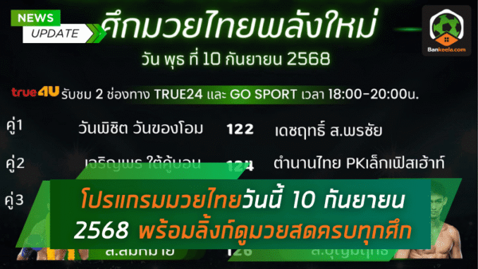 โปรแกรมมวยไทย วันพุธที่ 10 กันยายน 2568