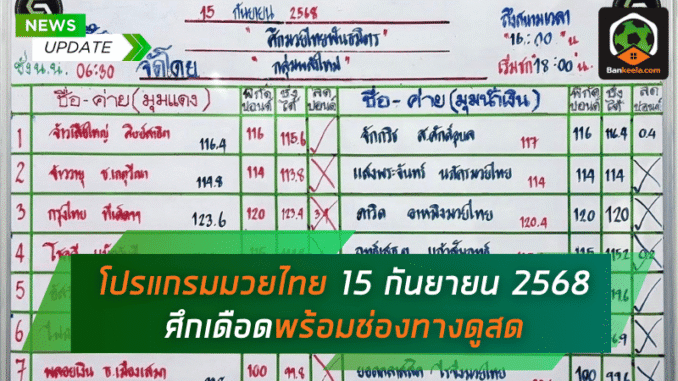 ไฮไลต์โปรแกรมมวยไทย วันจันทร์ที่ 15 กันยายน 2568