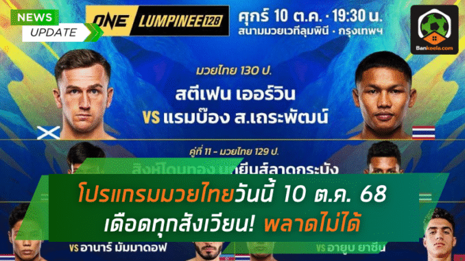 โปรแกรมมวยไทยวันนี้ 10 ต.ค. 68 ดุเดือดทุกสังเวียน! พลาดไม่ได้ ดูมวยสดผ่าน BANKEELA