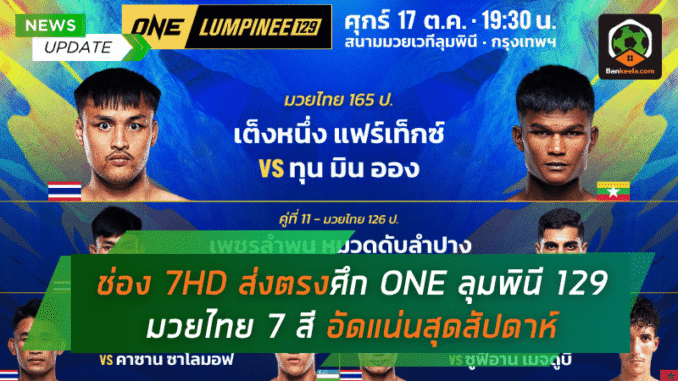แฟน ดูมวยไทย เตรียมตัวให้พร้อม เพราะศึกสุดสัปดาห์นี้ ช่อง 7HD พร้อมระเบิดความมันแบบจัดเต็ม ด้วยสองรายการใหญ่ระดับประเทศ ทั้ง ONE ลุมพินี 129 และ มวยไทย 7 สี ที่ขนเอานักชกฝีมือระดับพระกาฬมาวัดกันแบบไม่มียั้ง คอมวยตัวจริงพลาดไม่ได้เด็ดขาด!