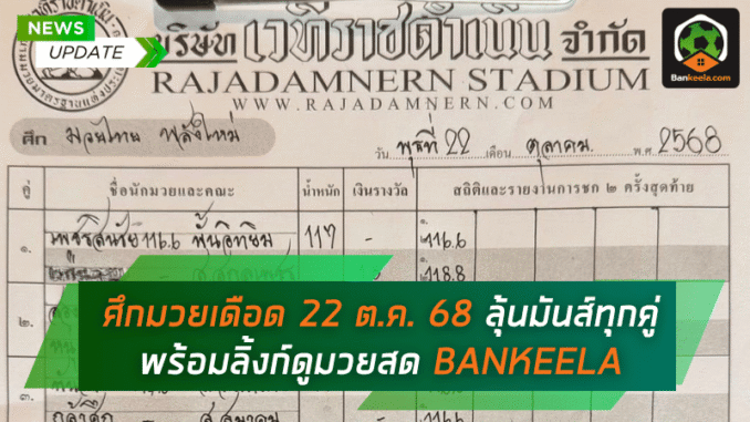 🥊 รายการมวยไทยวันนี้ 22 ตุลาคม 2568