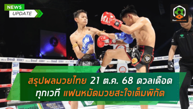 สาย มวยไทย ต้องไม่พลาด! ศึกกำปั้นเมื่อคืนวันที่ 21 ตุลาคม 2568 เรียกได้ว่าเป็นค่ำคืนที่เวทีมวยทั่วประเทศลุกเป็นไฟ เพราะมีทั้งการชกสุดมันส์ ผลพลิกล็อก และไฟต์ที่แฟน ๆ ตั้งตารอ งานนี้ ผลมวยไทย จากหลายเวทีถูกจับตามองอย่างใกล้ชิด ใครพลาดดูสดสามารถเช็กสรุปครบทุกคู่ได้ที่นี่ พร้อมช่องทางดูย้อนหลังจาก BANKEELA สำหรับแฟนกำปั้นตัวจริง