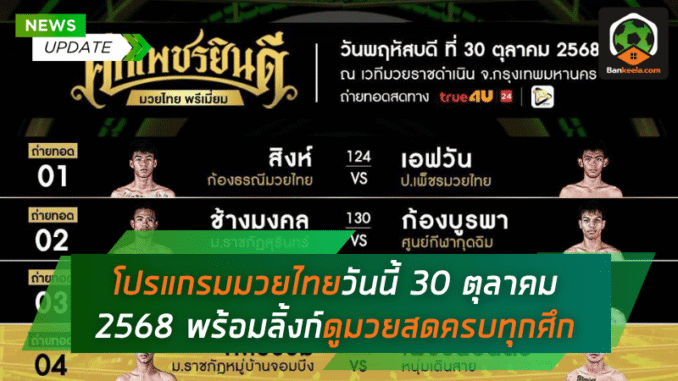 🔥 โปรแกรมมวยไทยวันนี้ (วันพฤหัสบดีที่ 30 ตุลาคม 2568)