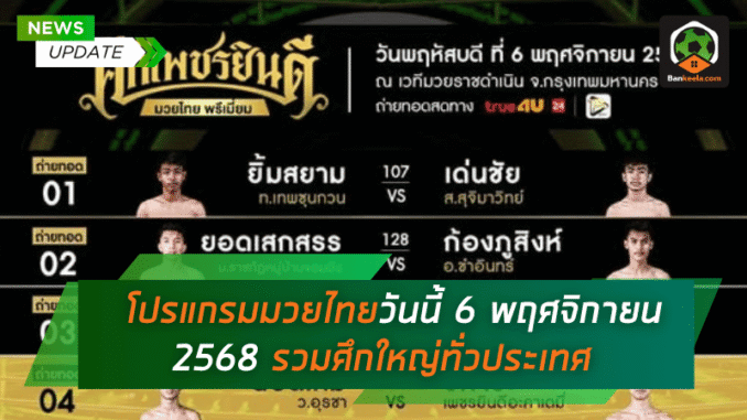 🔥 โปรแกรมมวยไทย วันพฤหัสบดีที่ 6 พฤศจิกายน 2568