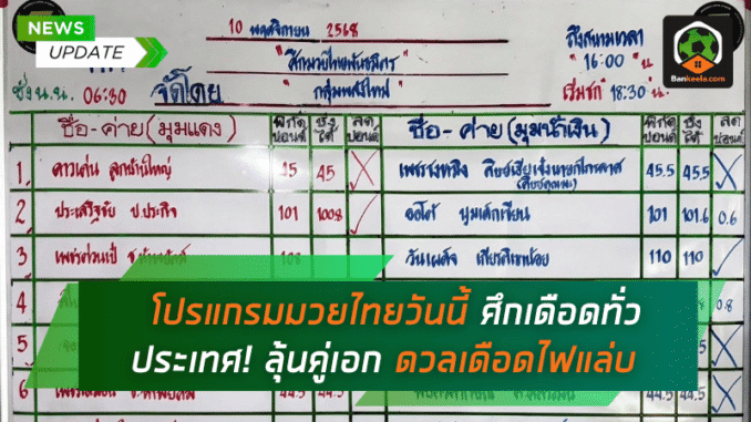 โปรแกรมมวยไทยวันนี้ ศึกเดือดทั่วประเทศ! ลุ้นคู่เอก ดวลเดือดไฟแล่บ คืนจันทร์นี้ห้ามพลาด