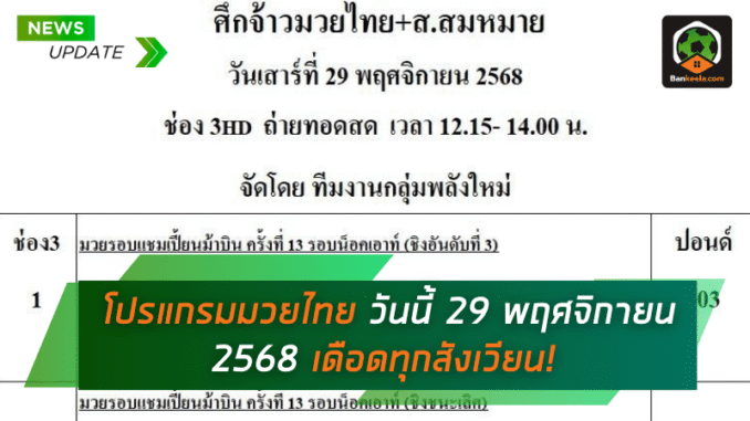 คอมวยไทยตัวจริงอย่าลืมติดตามข่าวมวยไทยทุกวัน รวมโปรแกรมมวย ผลคู่ชก และช่องทางดูสดครบทุกสังเวียนได้ที่ มวยสดบ้านกีฬา แหล่งรวมความมันส์ของคนรักมวยไทยตัวจริง!