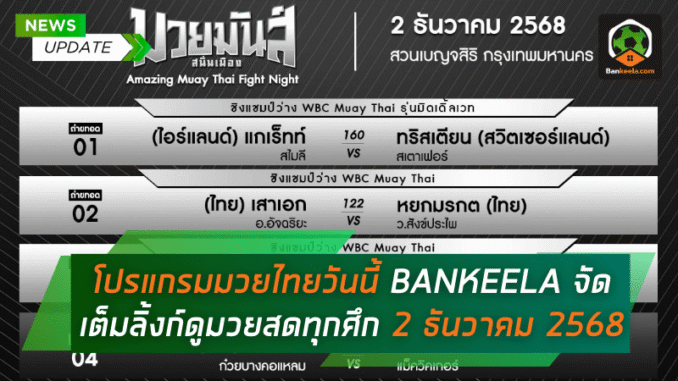 สำหรับแฟนมวยไทยตัวจริงที่ไม่อยากพลาดทั้งโปรแกรมมวยไทยวันนี้ ลิ้งก์ถ่ายทอดสด ช่องทางรับชมอย่าง BANKEELA รวมถึงสรุปผลและข่าวมวยไทยสำคัญ ๆ อย่าลืมติดตามความเคลื่อนไหวมันส์ ๆ ได้ที่ มวยสดบ้านกีฬา เราพร้อมพาแฟนมวยไปให้สุดทุกศึกบนสังเวียนไทยและต่างประเทศ