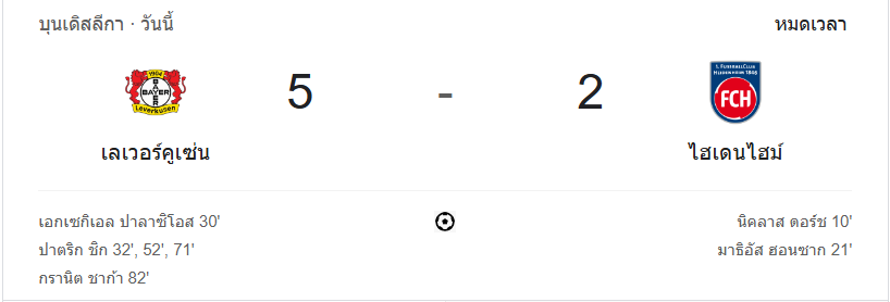นาทีที่ 94: จบเกม เลเวอร์คูเซินเอาชนะไปด้วยสกอร์ 5-2