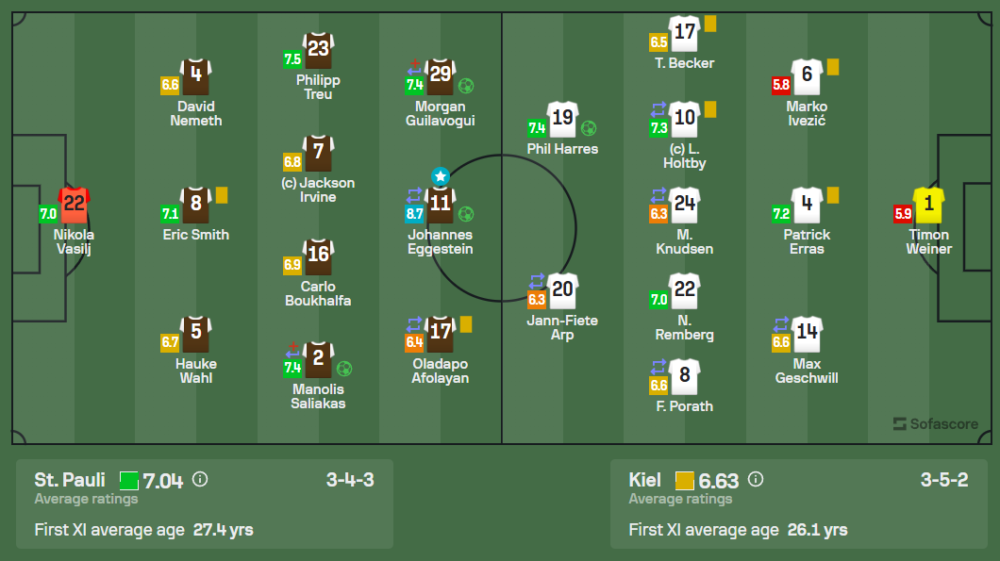 เกมนี้ ซังค์ เพาลีมีโอกาสยิง 11 ครั้ง เข้ากรอบ 4 ครั้ง ครองบอล 48% ขณะที่โฮลสไตน์ คีลยิง 10 ครั้ง เข้ากรอบ 3 ครั้ง แต่ครองบอลได้มากกว่า 52% การจ่ายบอลของทั้งสองทีมอยู่ในระดับสูง แต่เจ้าถิ่นสร้างโอกาสได้เฉียบขาดกว่า