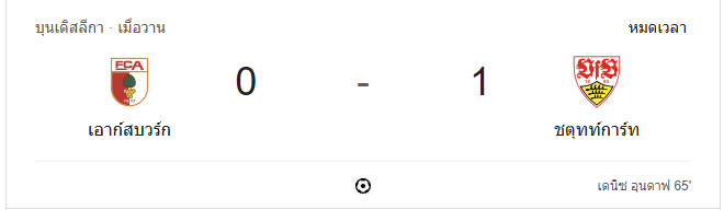 นาทีที่ 90+4: จบเกม สตุ๊ตการ์ตเอาชนะเอาก์สบวร์กไปได้ด้วยสกอร์ 1-0 เก็บสามแต้มสำคัญในเกมนี้