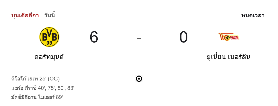 จาก : ผลบอลสด บุนเดสลีกา 2024 ระหว่าง โบรุสเซีย ดอร์ทมุนด์ 6-0 ยูเนี่ยน เบอร์ลิน วันนี้ 23/2/68 – บ้านกีฬา