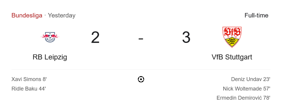 จาก : ผลบอลสด บุนเดสลีกา 2025 ระหว่าง แอร์เบ ไลป์ซิก 2-3 สตุ๊ตการ์ต วันนี้ 17/5/68 – บ้านกีฬา