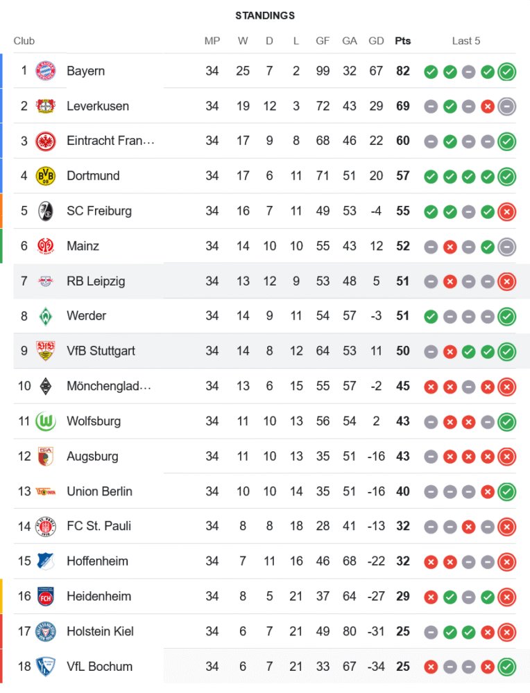 ความพ่ายแพ้นัดนี้ทำให้แอร์เบ ไลป์ซิกจบฤดูกาลที่อันดับ 7 ของตาราง มี 51 แต้ม เท่ากับเบรเมนแต่ผลต่างประตูได้ดีกว่า ส่วนสตุ๊ตการ์ตจบที่อันดับ 9 เก็บเพิ่มเป็น 50 แต้ม ถือเป็นการขยับอันดับขึ้นได้ในวินาทีสุดท้ายของฤดูกาลแบบเร้าใจ