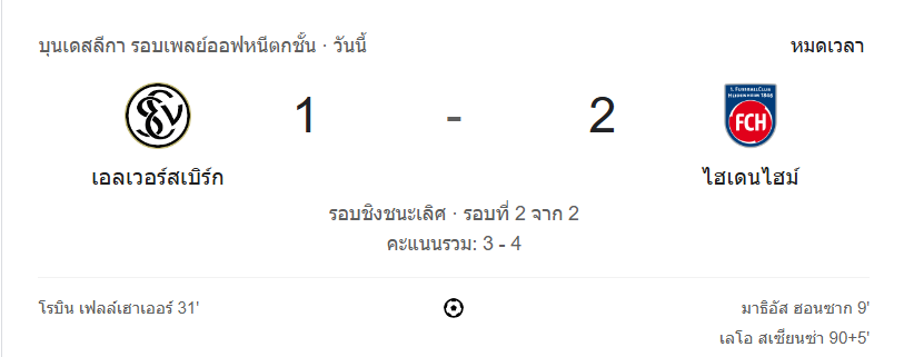 บ้านกีฬา สรุปดราม่าศึกเพลย์ออฟ บุนเดสลีกา ไฮน์เดนไฮม์โชว์ความเก๋าในเกมสำคัญ บุกยิงดับฝันเจ้าถิ่นนาทีบาป แม้เอลเวอร์เบิร์กจะพยายามเต็มที่ สู้ได้มันส์ยันวินาทีสุดท้าย แต่พลาดเสียประตูท้ายเกมแบบสุดเจ็บปวด สุดท้ายต้องชวดขึ้นชั้น สกอร์รวมพ่าย 3-4 ขณะที่ไฮน์เดนไฮม์การันตีอยู่ลีกสูงสุดต่อไปแบบสุดสะใจ ผลบอลสด คู่นี้คือที่สุดของดราม่าปีนี้!