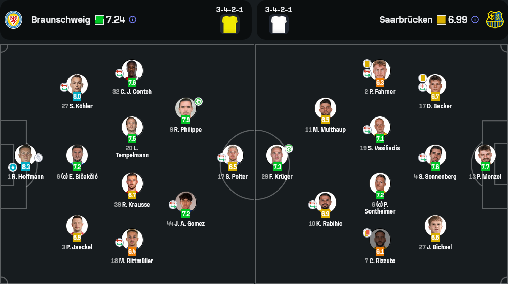 วิเคราะห์บอล บราวน์ชไวก์จัดทัพมาในแผน 3-4-2-1 เน้นการประสานเกมรุกจากกลางสนาม โดยมี เทมเพลมันน์ และเคราเซอ เป็นสองห้องเครื่อง ขณะที่ริมเส้นใช้ความเร็วของคอห์เลอร์และโกเมซ แต่จุดแข็งแท้จริงคือเกมรุกในช่วงท้ายที่แสดงให้เห็นถึงความไม่ยอมแพ้และความมั่นใจในการโจมตี ในช่วงต่อเวลา บราวน์ชไวก์ดันไลน์สูงและเปลี่ยนตัวได้อย่างเฉียบขาด โดยเฉพาะการส่ง ซานเชซ และ ฟิลิปป์ ลงมายิงสองประตูสำคัญ