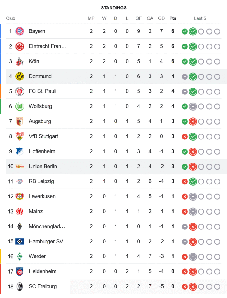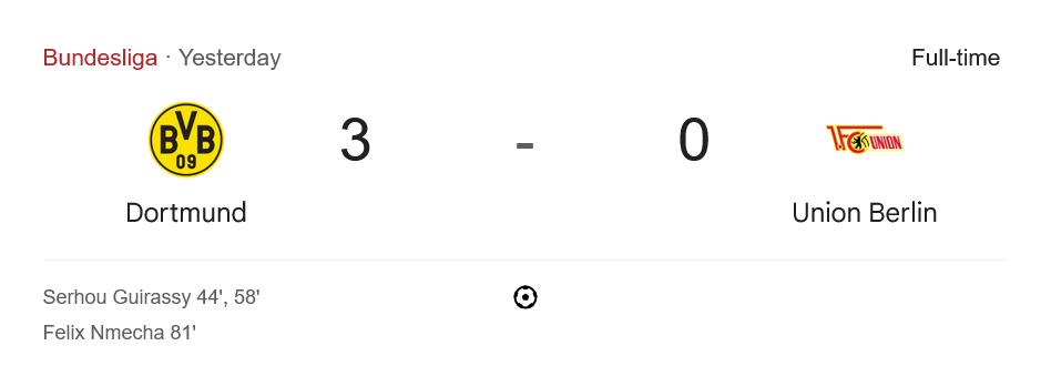 ชัยชนะนี้ส่งดอร์ทมุนด์มี 4 คะแนนจาก 2 นัด รั้งอันดับ 4 ของตาราง บ้านผลบอล ชี้ว่าทีมเริ่มกลับมาอยู่ในเส้นทาง ขณะที่ยูเนี่ยน เบอร์ลิน หล่นไปอันดับ 10 มี 3 คะแนน ผลต่างประตู -2 ซึ่งต้องเร่งแก้เกมบุกให้เฉียบคมขึ้น หากหวังเบียดพื้นที่หัวตาราง