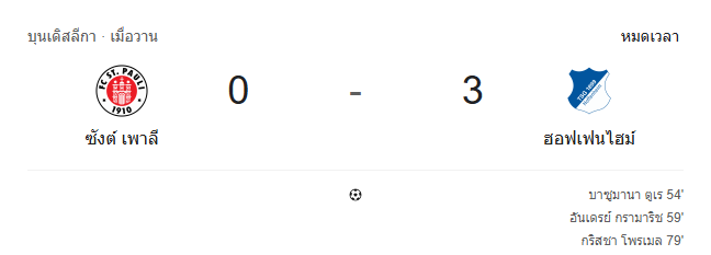 รายงานการแข่งขัน: ซังต์ เพาลี 0-3 ฮอฟเฟ่นไฮม์