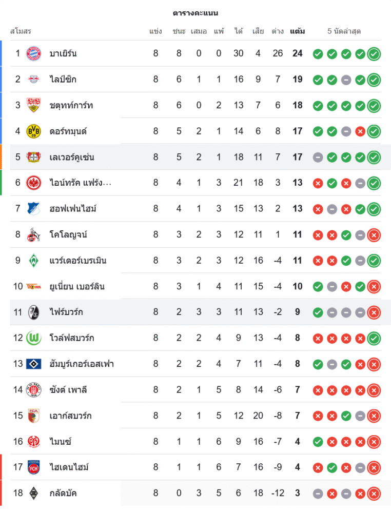 ชัยชนะเกมนี้ทำให้ ไบเออร์ เลเวอร์คูเซิน เก็บเพิ่มเป็น 17 คะแนนจาก 8 นัด ขยับรั้งอันดับ 5 ของตาราง บ้านผลบอล ไล่จี้กลุ่มหัวตารางอย่างใกล้ชิด โดยมีแต้มเท่ากับ ดอร์ทมุนด์ (อันดับ 4) ส่วน ไฟร์บวร์ก ยังรั้งอันดับ 15 ด้วย 8 แต้ม ต้องเร่งฟอร์มด่วนก่อนโปรแกรมหนักในเดือนพฤศจิกายน