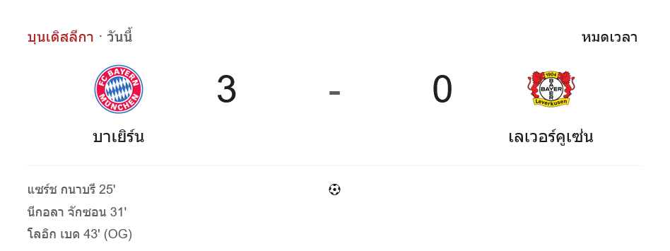 จาก : ผลบอลสด บุนเดสลีกา ระหว่าง บาเยิร์น มิวนิค 3-0 ไบเออร์ เลเวอร์คูเซิน วันนี้ 2/11/68 – บ้านกีฬา