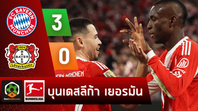 ศึก บุนเดสลีกา เยอรมนี นัดบิ๊กแมตช์สุดสัปดาห์จบลงด้วยฟอร์มโหดของ “เสือใต้” บาเยิร์น มิวนิค ที่เปิดบ้านอัด “ห้างขายยา” ไบเออร์ เลเวอร์คูเซิน ไปแบบไร้ทางสู้ 3-0 ส่งผลให้ยอดทีมแห่งแคว้นบาวาเรียคว้า 3 คะแนนเต็ม นำจ่าฝูงต่อด้วยผลงานไร้พ่าย 9 นัดรวดในซีซั่นนี้ บ้านกีฬา ขอสรุปเกมนี้พร้อม ผลบอลสด และวิเคราะห์เกมครบทุกมุม