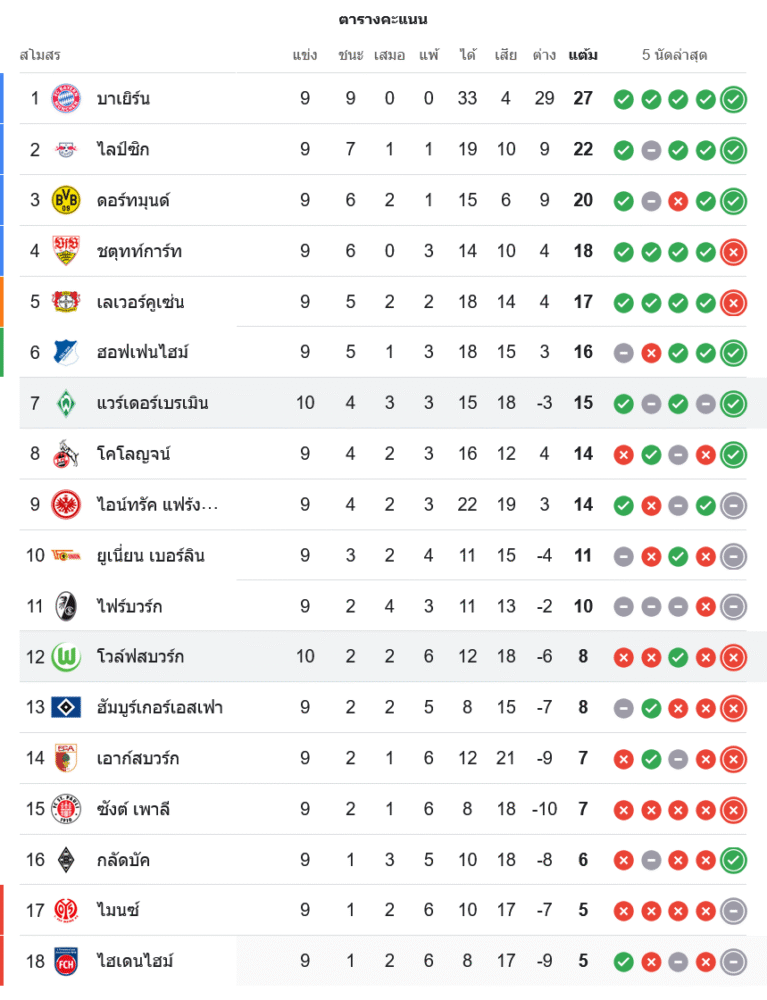 📊 สถานการณ์ในตารางคะแนนบุนเดสลีกา