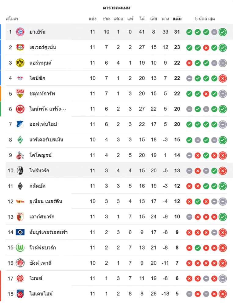 📈 สถานการณ์ในตารางคะแนนบุนเดสลีกา