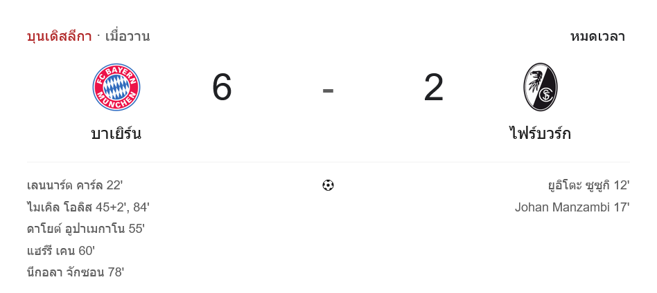จาก : ผลบอลสด บุนเดสลีกา ระหว่าง บาเยิร์น มิวนิค 6-2 ไฟร์บวร์ก วันนี้ 22/11/68 – บ้านกีฬา