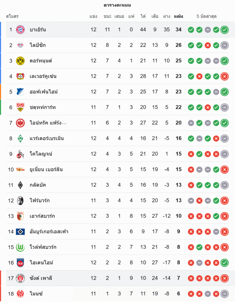 📌 สถานการณ์ในตารางคะแนนบุนเดสลีกา