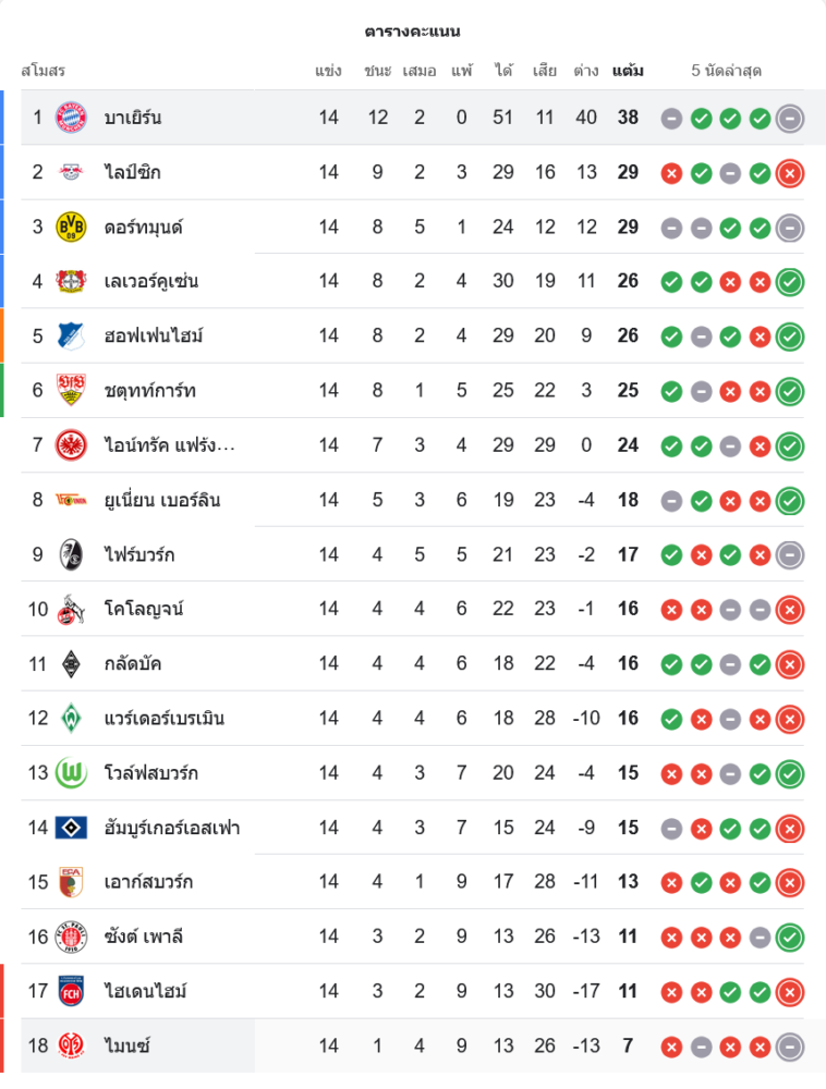 📈 สถานการณ์ในตารางคะแนนบุนเดสลีกา