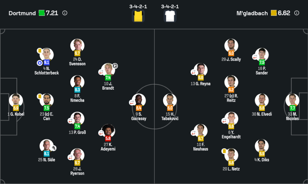 🟡 ดอร์ทมุนด์ (3-4-2-1) – เรตติ้งเฉลี่ย 7.21